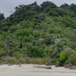 Mittags sind wir zum Heaphy Track aufgebrochen, einem der Great Walks, der nur 15min nördlich von Karamea startet. Dabei ging es durch den typischen neuseeländischen Regenwald mit verschiedensten Farnen bis zum Scott‘s Beach, einem wunderschönen Sandstrand in einer Bucht. Das einzig nervige waren die Sandflies.
