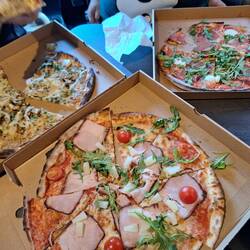 Unsere geliebte Pizza. Der Laden war super modern, obwohl er auf einem Campingplatz lag. In Skandinavien ist es üblich, dass man nur mit Karte zahlt, aber wir hatten etwas Geld getauscht und wolltenもっと詳しく
