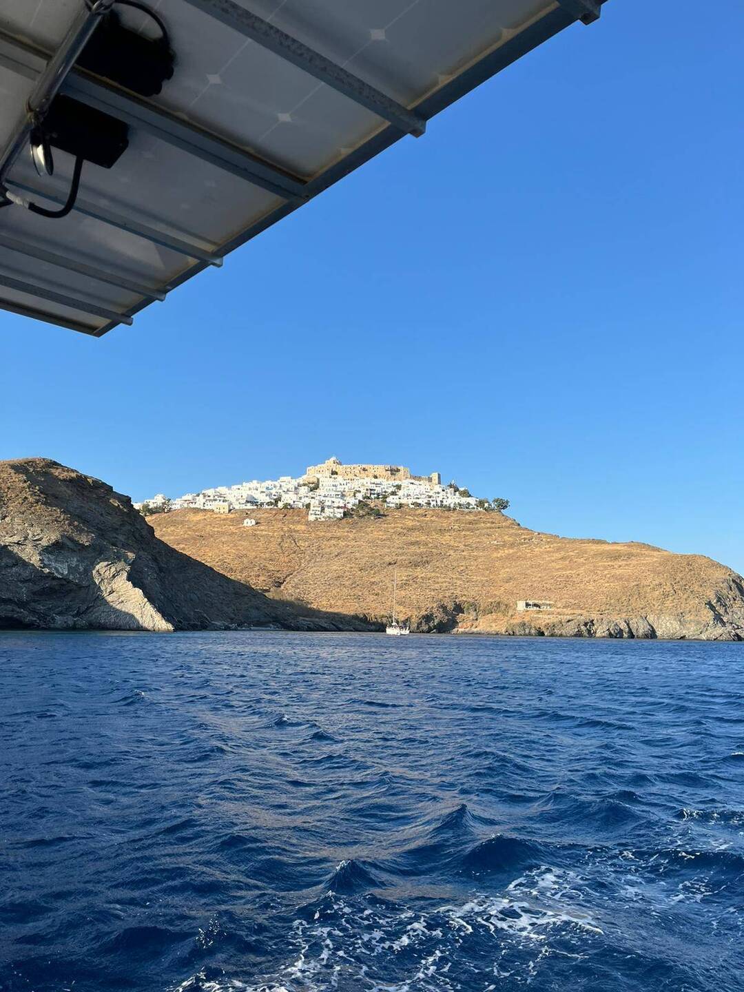 After 5 hours of heavy waves (almost 3 meters high) and strong winds we arrived in Astypalaia. Beautiful island and although it belongs to Dodecanese it has a clear cycladic style!