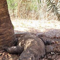 Lange liess der erste Drache nicht auf sich warten. Ein grosses, vollgefressenes Individuum lag im Schatten einer Palme. Weitere folgten kurz darauf. Selbst der "King" war anwesend. Man sagte, wir hätten Glück, denn die Warane lassen sich nicht immer Blicken