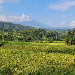 Tags darauf wollte ich den Reisfeld-Rundgang machen. Ein Guide war rasch zur Stelle und los ging's. In dieser Gegend wird zweimal pro Jahr Reis geerntet bevor die Reisterrassen ausgetrocknet und für Chilis, Erdnüsse, Maniok u.ä. zwischengenutzt werden. Der Anbau von Reis ist eine wahrhaftige Knochenarbeit. Die Setzlinge müssen alle von Hand gepflanzt werden. Wenn sie dann verwurzelt sind, folgt Wasser. Dieses wird durch ein komplexes Wasserleitsystem gedrosselt. Ich frage mich noch immer, wie das funktioniert, dass jeder Reisbauer genug Wasser zur Verfügung hat.