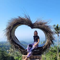Tags darauf holte mich der Bruder des Homestays mit seinem Auto ab und fuhr mich zur Tempelanlage Pura Lempuyang. Ich hatte ja keine Ahnung von nichts...zuerst musste ich einen Shuttle berappen, der einem vom Parkplatz zum Tempel hochfuhr. Danach war der Eintritt fällig und die Beantwortung der Frage, ob ich meine Menstruation habe (!). Ansonsten darf ich nicht in den Tempel. Dann noch dieses ominöse Nummern-Ticket. Mein Fahrer konnte nicht erklären, was es ist. In der Tempelanlage war es dann schnell klar. Das war meine Nummer für die heissbegehrten Photos zwischen den Himmelspforten. Fürs Protokoll: Nr. 87 war dran...ich hatte Nr. 133. Tourifalle? Ja doch. Doch mein Fahrer kannte sich aus und hetzte mich woanders hin. Da standen wir plötzlich vor dem Heaven's Garden... eigentlich nichts anderes als tolle Sujets für tolle Photos. Selbstverständlich nicht gratis. Aber da stand ich nun und dachte mir, was solls, der Preis ist umgerechnet nur ein paar Franken und es ist ein Zeitvertreib...also los! Ich kam mir vor wie ein ungeschminktes Topmodel. Posen ist (für mich) eine Herausforderung. :-) Gibt sicher kein Foto von Heidi Klum...