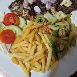 Danach habe ich mich im Hottube entspannt, meine Weiterreise zusammengestellt und bin zu Fuss etwa 30 Minuten ins Dorf spaziert. Ich brauchte wiedermal Geld und Wasser. Das abendliche Highlight: Einer der besten grillierten Fische!