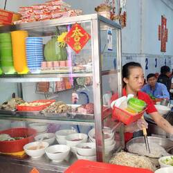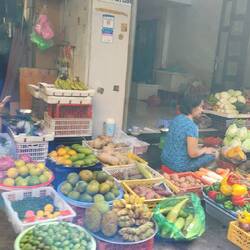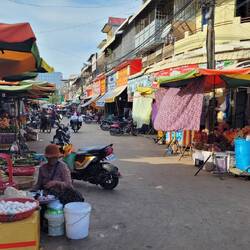 Die Strassen der Stadt sind mehrheitlich schachbrettartig angelegt und haben nebst Namen auch Nummern, was es wesentlich vereinfacht, um sich zurechtzufinden. Insgesamt empfand ich die Stadt weit weniger wuselig als Saigon. Aber je näher man sich einem grossen Markt nähert, desto lebhafter und bunter wird das organisierte Wirrwarr wieder bestehend aus fahrenden Ständen und Restaurants, Foodstalls, Läden, Menschen und Fahrzeugen. Wir besuchten den ältesten Markt, der mit einem grossen, aus der französischen Kolonialzeit stammenden Kuppeldach ausgestattet ist. Am frühen Morgen war nur bei der "Lebensmittelabteilung" was los. Ansonsten war es ruhig und so konnten wir gemütlich durch die engen Gassen schlendern.
