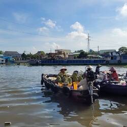 Als erstes musste der Mekong überquert werden, um in ein Labyrinth aus Sandbänken, Sträuchern und Bäumen zu gelangen. Da der Pegel aktuell ziemlich hoch ist, sind viele Bäume derzeit im Wasser. Es war eine traumhafte Landschaft! Bald schon sahen wir einen Reiher, der leider versucht hat, einen Fischerköder zu fressen und so natürlich am Haken hängenblieb. Der Guide steuerte ihn an und befreite ihn kurzerhand. Ich habe das ganze mit seinem Handy gefilmt.