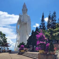 Dann gibt es etwas weiter nördlich der Stadt, wo bereits die ersten Hügel die Landschaft formen, eine 90-Meter hohe Bhudda-Statue, in der mit dem Lift bis ganz nach oben gefahren werden kann. Daneben befindet sich nochmals ein weisser aber längst nicht so prachtvoller Tempel und eine Pagode. Ich bin extra gegen Sonnenuntergang hingefahren habe etwas gewartet, bis alles schön beleuchtet war.