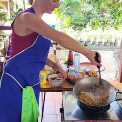 Ach und fast hätte ich es vergessen! Ich ging noch in eine Thai Cooking Class! Insofern wurden meine Erwartungen übertroffen, weil jeder Teilnehmer aus den Menüs "Suppe", "Stir Fried" und "Curry" auswählen konnte, was er kochen will. Ich entschied mich für Pad Thai, Panaeng Curry und die Tom Yum Suppe. Neben den Fotos, die sie von uns währenddessen machten, bekamen wir ein 40-seitiges Kochbuch aller Rezepte (zum Glück elektronisch, weil mein Rucksack... ihr wisst schon...).