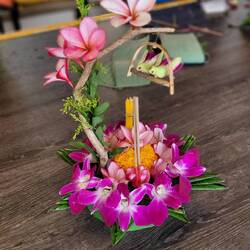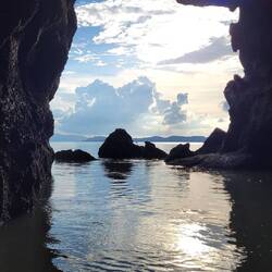 Die Tour, welche ausnahmsweise etwas teurer war, ist vom Anbieter John Gray's Seacanoe. Dieser urchige, bärtige Typ betreibt den Laden schon seit den 90er-Jahren und verspricht, nachhaltige Kanutouren abseits der grossen Touristenmassen. Wir fuhren mit einem grösseren Schiff Richtung Ao Phan-Nga Nationalpark zu Koh Hong. Es gab zuerst ein typisch thailändisches Mittagsbuffet plus Briefing über die bevorstehende Tour. Danach wurden wir einem der Guides zugeteilt. Irgendwann realisierten wir, dass wir nur ins Kanu sitzen müssen. Paddeln? Nein, dazu war der Guide da. Wir mussten nur geniesssn und fertig. Er fuhr mit uns entlang der Kalksteinfelsen, welche bis zu 200m über das Meer ragen. Die Kulisse war atemberaubend schön. Später ging es mit dem Kanu durch Höhlen, um in die Buchten innerhalb der Kalksteinformationen zu gelangen. Es war sehr eindrücklich. Anschliessend, am späteren Nachmittag, bastelten wir noch ein sogenanntes Kratong, also eine schwimmende, aus Bananenblättern, Blumen und anderen natürlichen Materialien bestehende "Laterne", welche bei Einheimischen eine wichtige Bedeutung hat z.B. beim jährlichen Lichterfest. Nach dem üppigen Abendessen genossen wir den Sonnenuntergang und begaben uns anschliessend mit den Kanus in eine Höhle, um einerseits die Kratongs schwimmen und strahlen zu lassen und andererseits, um die Biolumineszenz zu sehen - kleine selbstleuchtende Tierchen, sobald man das Wasser in Bewegung setzt. Fotografieren war allerdings nicht möglich: Die Fotos werden nur schwarz.