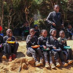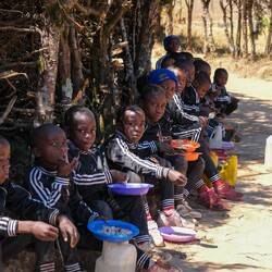 Absolut veganes Essen, was kann es besseres geben. Die Kinder sehen alle recht zufrieden aus. Die Essensverteilung hat sicherlich Spaß gemacht.