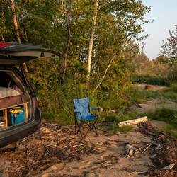 Sault Ste. Marie ist sowohl Kanadisch als auch US amerikanisch, auf der anderen Seite der Brücke sieht man die USA. Doch ich mache mich lieber auf die Suche nach einem schönen Schlafplatz.