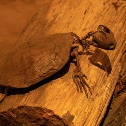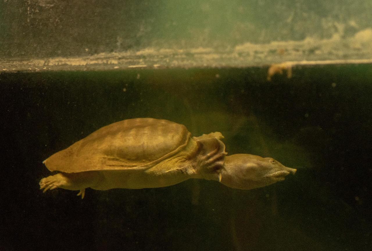 Neben den Fossilien hatten sie tatsächlich auch einige wenige lebende Tiere. Unter anderem die Dornrand-Weichschildkröte. Sie ist unheimlich häßlich und soll ziemlich aggressiv sein. Da ist mir das Skelett doch lieber.