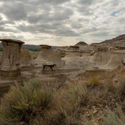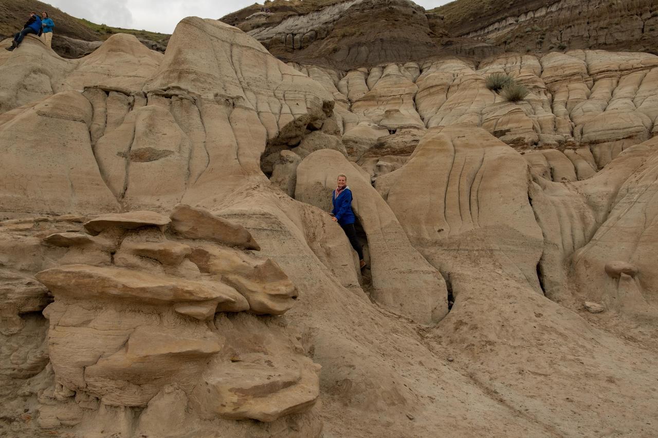Hier in den Badlands wurden und werden unzählige Fossilien gefunden. Das Museum hat die größte Sammlung an Dinosaurierskeletten, insgesamt haben sie 40 vollständige Skelette. Unter anderem auch T-Rex, unglaublich wie groß die waren. Da ist man froh das sie ausgestorben sind.Læs mere