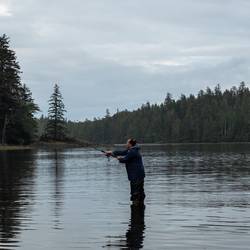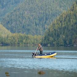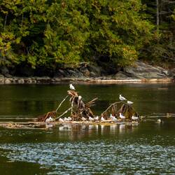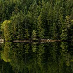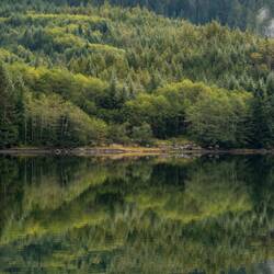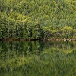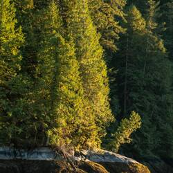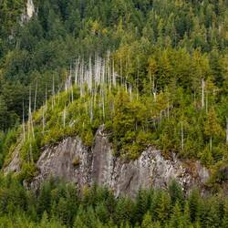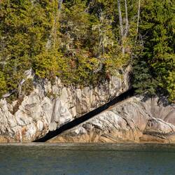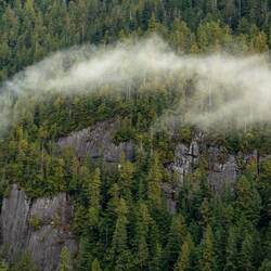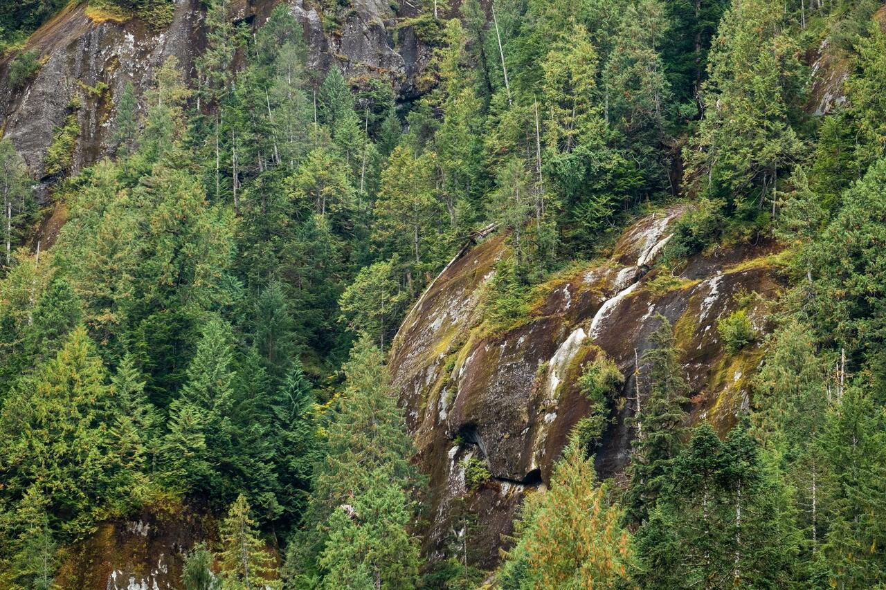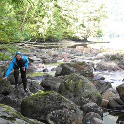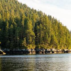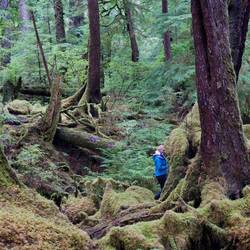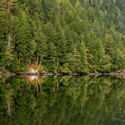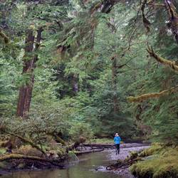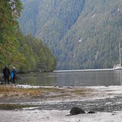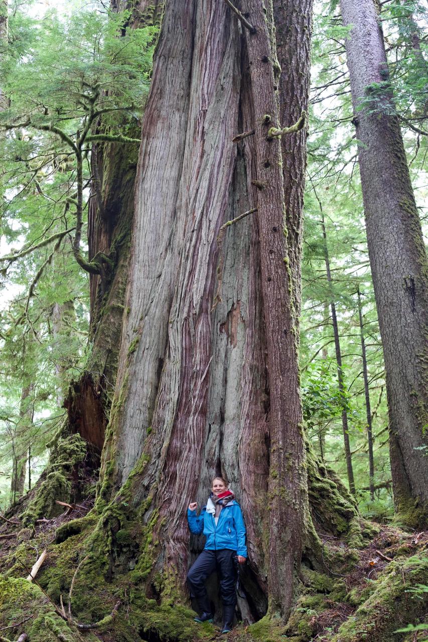 Wir laufen wieder den Fluss hoch und sehen leider keine Bären. Dafür stehen hier Riesenbäume mit Durchmessern über 5m. Es ist ein Glück, dass hier die Holzindustrie hier nicht hinkommt.