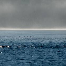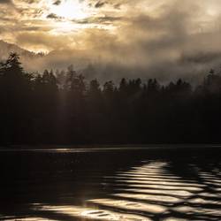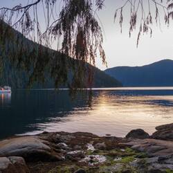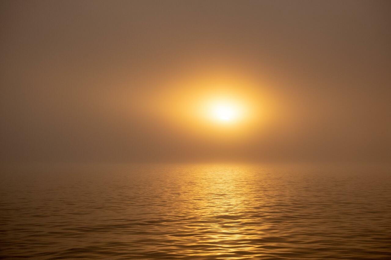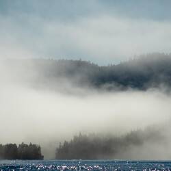 Ein wunderschöner Sonnenaufgang im Nebel begrüßt uns am Morgen. Der verzieht sich zum Glück über den Tag und wir segeln bei schönstem Wetter nach Port Hardy.