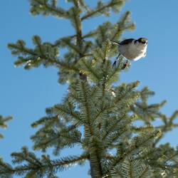 Es macht unheimlichen Spaß auf der Schneedecke durch die wundervolle Landschaft zu laufen. Dabei folgen uns einige Whiskey Jacks, die wir aus der Hand füttern. Echt cool!