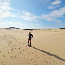 Wanneer we in de namiddag terugkeren naar het hotel, zie ik op het balkon plots een T-shirt verschijnen met daarop “Antwerpen – Gent – Hasselt”. Het blijkt van Ingrid te zijn, die hier is voor de Ironman op 11 oktober. Toffe ontmoeting!
