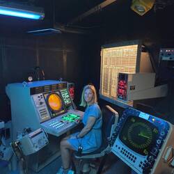 Boven op het vliegdek wandelen we tussen de vliegtuigen door en genieten van het uitzicht. Moeilijk voor te stellen dat sommige bemanningsleden vroeger maar één keer om de twee weken even naar buiten mochten. We blijven uiteindelijk bijna vijf uur aan boord. Een boeiende en indrukwekkende ervaring!