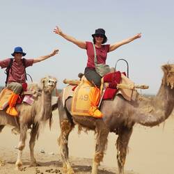 Of course no visit to the desert is complete without a camel ride! Only a short distance from town the sand mountain Mingsha Shan rises impressively. Camel riding in orange sand boots is a must, as is viewing the spectacular Crescent Moon Lake.