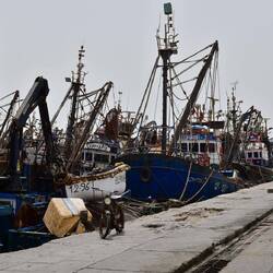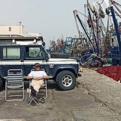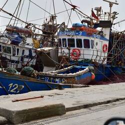 Wir fahren bis ganz in die Spitze der Landzunge zum Fischereihafen. Der Hafen ist voll mit Schiffen, die wegen des Ramadan nicht auslaufen.