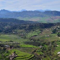 Wir fahren über kleine Bergstraßen nach Ronda, eine Stadt auf einem Berggipfel .