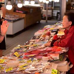 Unser Tag beginnt mit dem Besuch des Fischmarktes. Schon nach wenigen Marktstãnden stellen wir fest, daß dies eine Küstenstadt ist. Alles dreht sich hier um Meeresfrüchte und Fisch.