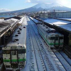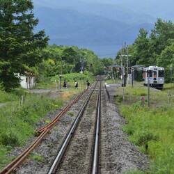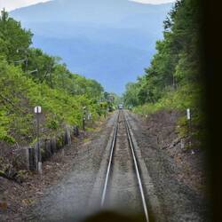 Am Nachmittag geht es mit der Bimmelbahn um den Mount Komagatake herum. Zumindest theoretisch...