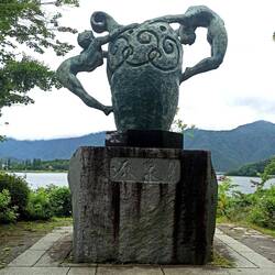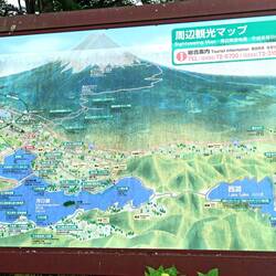 Wir gehen zu Fuss zum See. Dort fährt auch die Seilbahn. Alles dreht sich darum, den einen Blick auf den Fuji zuMeer informatie