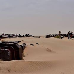 Heute wollen wir von Chinguetti nach Ouadane fahren. Wir müssen quer durch die Ouadane-Dünen, die sich gen Osten bis nach Mali erstrecken. 100 km durch Sand und Dünen. Die Fahrt ist phantastisch.Read more