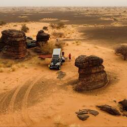 Früh geht es los. Das Ziel ist die Durchquerung des Auge Afrikas. Ein ringförmiger Krater, der erst durch die ersten Satellitenaufnahmen bekannt wurde. Der Ursprung soll vulkanisch sein.