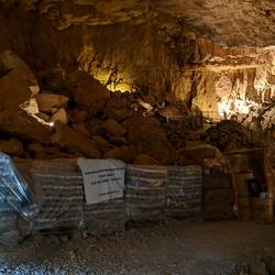 Le lendemain, nous déjeunons et retournons aux grottes pour notre tour. Nous avons une visite guidée avec notre guide et 3 autres personnes. La visite prend un bon 45 minutes. Nous commençons par descendre avec l'ascenseur, comme dans une mine. En arrivant en bas, l'éclairage est tamisé et nous débutons la marche dans les cavernes. Cet endroit fût découvert par un certain Walter Peck, par hasard. Il faillit tomber dans une fosse en se rendant à sa partie de poker, en 1927. Il revint le lendemain pour investiguer le tout avec un de ses amis. Ils trouvèrent plusieurs minéraux qui semblaient être précieux et il fit analyser quelques échantillons. Pensant avoir trouvé de l'or, il acheta les terres au-dessus des grottes. À son grand désarrois, les résultats arrivèrent et aucun de ses échantillons n'était un minerais exploitable, pas pour faire des profits en tous cas! Il décida alors de changer de stratégie et ouvrit les cavernes au publique. Il trouva aussi des ossements qu'il croyaient être de dinosaures mais hélas, toujours pas de chance! Toujours est-il que ces grottes sont toujours en exploration de nos jours tellement elles sont vastes. Elles s'étendent sur 60 miles de long et se situent à 64 mètres de profondeur. Ce sont les plus grandes cavernes sèches du pays, ce n'est quand même pas rien! Aussi l'armée a décidé de l'utiliser comme abris en cas de conflit nucléaire. On y trouve donc des provisions (bouteilles d'eau, nourriture, toilettes) pour accueillir jusqu'à 2000 personnes pendant 2 semaines environ! Plusieurs aménagements ont aussi été faits pour les visiteurs. On y trouve notamment une chambre que l'ont peut louer pour la nuit à 1500$ US, un petit restaurant et une petite scène de spectacle. Plusieurs personnes connues sont d'ailleurs venues ici au fil des ans dont John Travolta, Frank Sinatra et Marylin Monroe. Plusieurs mariages y ont aussi été célébrés.