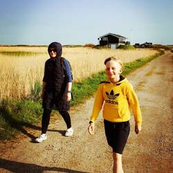 Strandwanderung mit frischer Brise. Heute ging es am Strand entlang zum Leuchtturm, dem westlichsten Zipfel Dänemarks.
