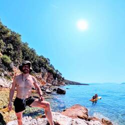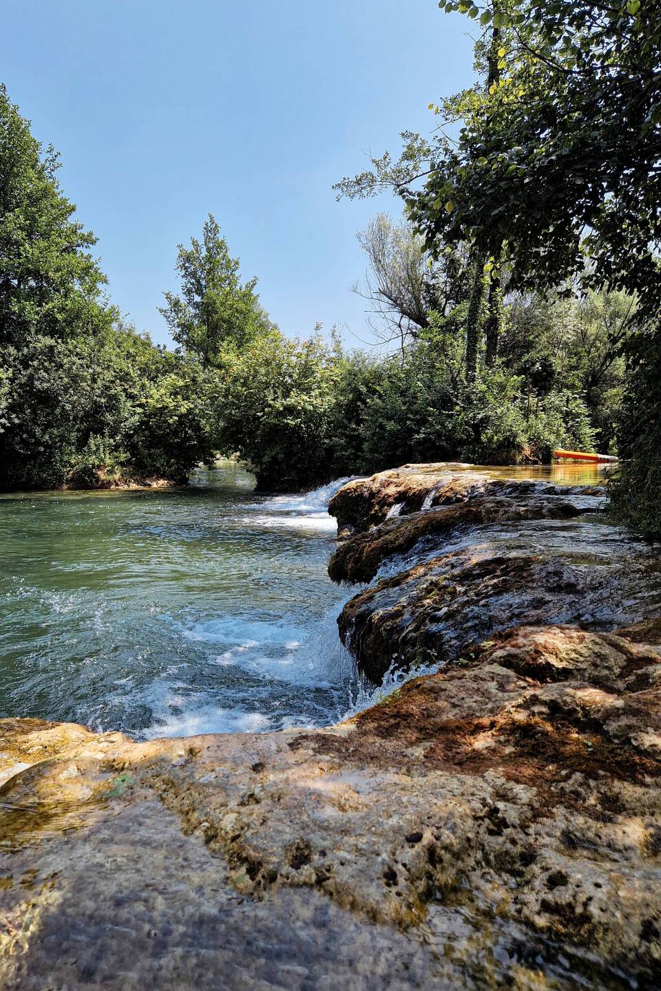 Bevor es heute wieder richtig heiß wurde, sind wir quer durch die Berge zum nahegelegenen Wasserfall Kozjak gewandert. Zum Glück konnte man sich auf dem Weg dorthin im Fluss etwas abkühlen.