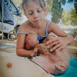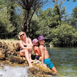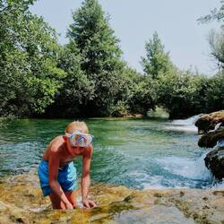 Heute wieder eine leider lange und abenteuerliche Fahrt durch die Berge in Richtung Kroatien. Die Kids haben aber gut durchgehalten. Nach dem Aufbau erstmal eine Abkühlung im Fluss.