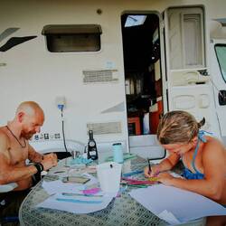 Auch wenn unser Womo etwas auf der Autobahn rumgezickt hat, sind wir nun am Meer angekommen und genießen unseren Top-Stellplatz direkt am Strand.