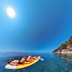 Unsere erste Tagesmission nach dem Frühstück war eine Runde mit dem SUP-Board zu drehen und dabei die Gegend um unser Camp zu erkunden.