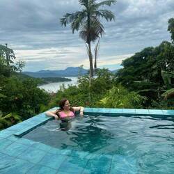 Después de 4hs de autopista y ruta llegamos a Paraty. La casa donde nos hospedamos es una belleza, con pileta al infinito π El verde que nos rodea, tan selvático, me encanta. Grillos, chicharrasLeggi altro