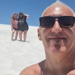Salimos temprano de Arraial y camino a Buzios, paramos en Cabo Frío en Praia Das Dunas, donde los Médanos son de coral (por eso son blancos y no se calientan con el sol!!!). Una belleza total!!!!.Leggi altro