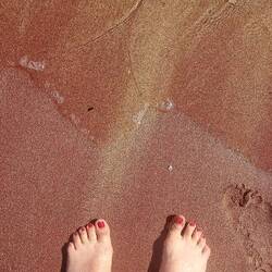 Una hermosa playa de arena rosa. El agua estaba MUY fría, pero no había nada de viento.