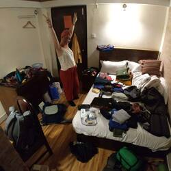 Im "Royal Garden" nehmen wir uns ein Zimmer mit Toilette. Wir werden mit einem Strahlen empfangen. Normalerweise laufen die Wanderer nicht zurück. Sie lassen sich mit dem Jeep nach unten fahren.
