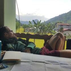 Heute sind wir 6 Jahre zusammen. Heute ist unser Jahrestag. Und es ist ein sehr holpriger Start in den Tag. Wir gehen nach oben und essen Melone und Passionsfrucht in der Sonne. Richtig gut fühlen wir uns nicht. Nach etwa einer Stunde erfahren wir, dass das Mädchen jetzt zu Hause bei ihren Eltern ist. Wir wissen nicht was sie hat und werden es auch nicht mehr erfahren. Es gibt niemanden hier der noch gutes Englisch spricht.