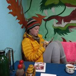 Es ist kälter heute. Die Sonne versteckt sich hinter den Wolken und auch der Annapurna ll ist nicht wirklich zu sichten. Unwichtig. Wir kuscheln ins Bett mit Schlafsäcken, die wärmen bis -12 Grad, und zwei dicken Wolldecken. Hörbuchzeit. Und so dösen wir. Ralf geht es Stunde um Stunde besser. Ich fühle mich krank. Sage aber nichts. Ist vielleicht nur die Kälte. Mein Hals schmerzt und auch meine Brustmuskeln, die vom ganzen Husten verkrampfen.