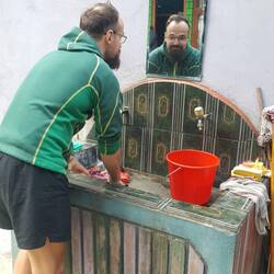 Der Raum in dem wir essen sieht aus wie aus einem billigen Bollywood-Film. Die bunte Deko ist eingegraut und die Hussen über den Stühlen haben ihre prachtvollen Jahre lange hinter sich. Trotzdem scheint der Raum ein wichtiger Raum für die Familie zu sein. Hier wurden Geschichten geschrieben. An den langen Tafeln wurde viel gefeiert. Und der alte Kitsch legt sich wie ein liebevoller Balsam auf unsere Seelen.