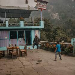 Sie bringt mir Reispudding und MarsalaTee - typischer nepalesischer Tee mit Milch, Gewürzen und viel Zucker. Ich frage sie, ob wir einen anderen Raum bekommen könnten. Es ist teilweise sehr laut, wenn viele Gäste im Gemeinschaftsraum sind. Wir hören jeden Schritt und jedes Stuhlrücken.