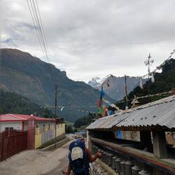 Nach Reis und Reispudding, bestückt mit 4 Eiern und den Datteln, die wir in Jagat gekauft haben, machen wir uns auf den Weg. 14 km und 500 m Anstieg und diesmal ist der Anstieg fast auf die komplette Strecke verteilt. Nur kurz vor Upper Pisang müssen wir unsere Kräfte nochmal bündeln. Bis dahin vergehen 6h und wir schlagen uns im schnellen Tempo voran.