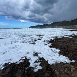 Der Wettergott meinte es nicht gut mit uns und hat uns mit Gewitter und Platzregen empfangen. Also haben wir den Plan gefasst, möglichst schnell von der Ostküste in den Westen der Insel zu kommen.Læs mere