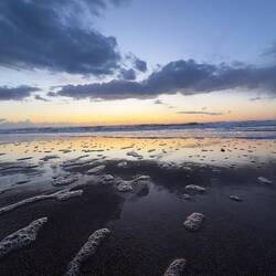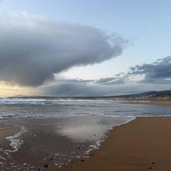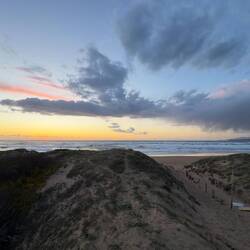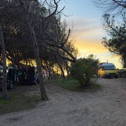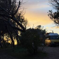 Weil es stürmisch werden soll heute Nacht, haben wir uns einen Platz hinter den Dünen in einem Pinienwald gesucht. Hat fast ein bisschen Cap Ferret Vibes hier. Und ganz viele verwilderte Katzen.