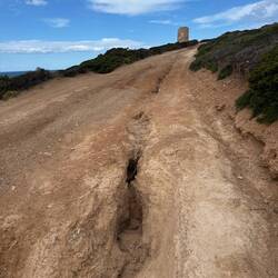 Als Einstiegstrack hatten wir eine Route entlang der Steilküste, die zwei alte Wachtürme verbindet. Fahrerisch war sie stellenweise etwas anspruchsvoller. Bei der Seitenneigung von 26° hatte ich obLæs mere