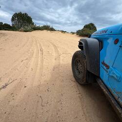 Das Trackbook hat uns spannendes Fahren auf ner Düne suggeriert. Da war zwar Sand, aber es war quasi nur ne dünne Schicht. Darunter war es hart. Schön war es dennoch…