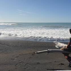 Après une nuit au kiwi camp, nous profitons de cette route aux abords désertique puis ensuite des paysages le long de l'océan, la route longeant de très près la côte, et la voie ferrée.