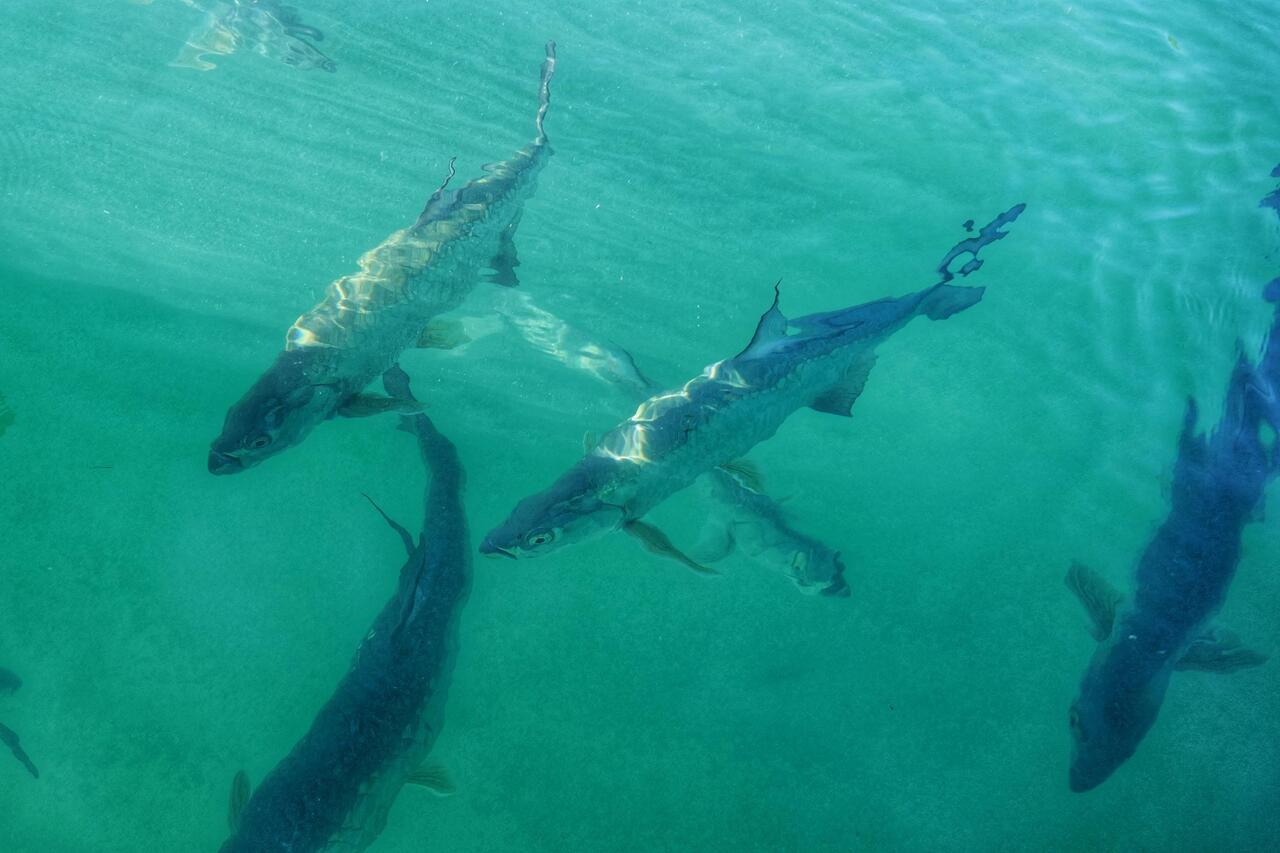 Nous terminons le tour de snorkeling avec quelques poissons pour tarpons et oiseaux. Les tarpons sont impressionnants quand ils sautent récupérer le poisson.